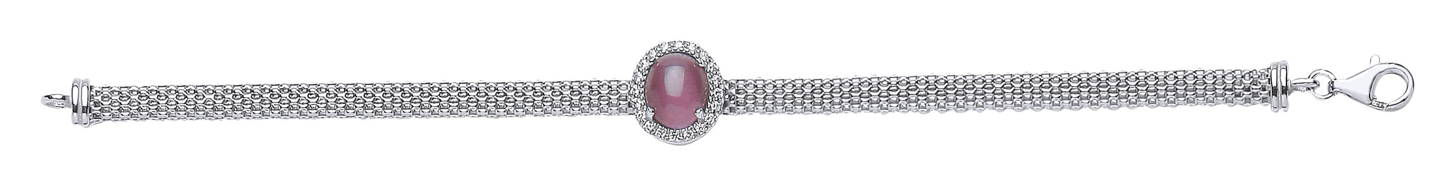 Silver Ladies Correana Bracelet With CZ & Ruby Circle Centre