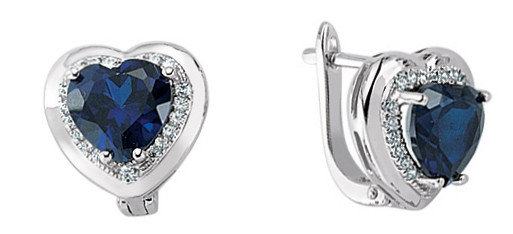 Silver Cubic Zirconia Sapphire Micro Pave Heart Earrings