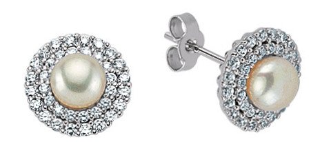 Silver Cubic Zirconia & Pearl Micro Pave Stud Earrings