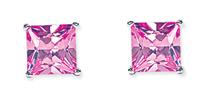 8mm Pink Square 925 Sterling Silver Stud Earrings
