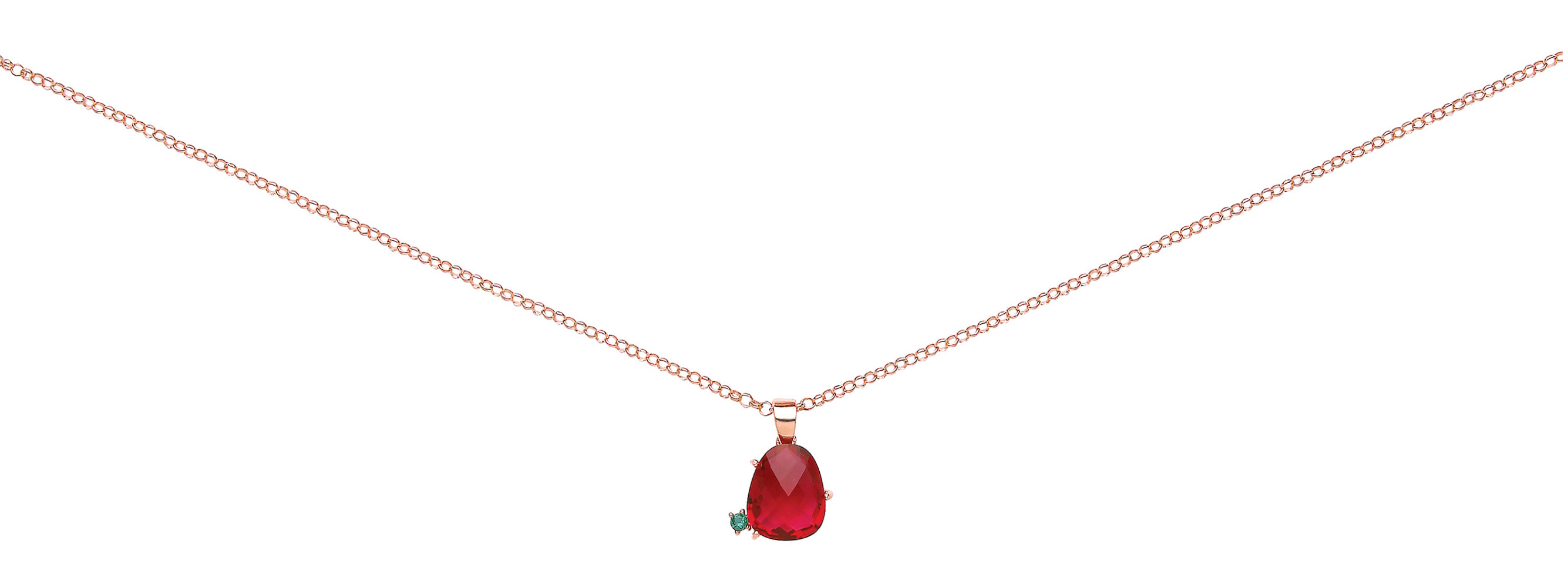 ROSE PLATED SILVER RUBY COCKTAIL PENDANT W/CHAIN