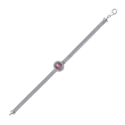 Silver Ladies Correana Bracelet With CZ & Ruby Circle Centre
