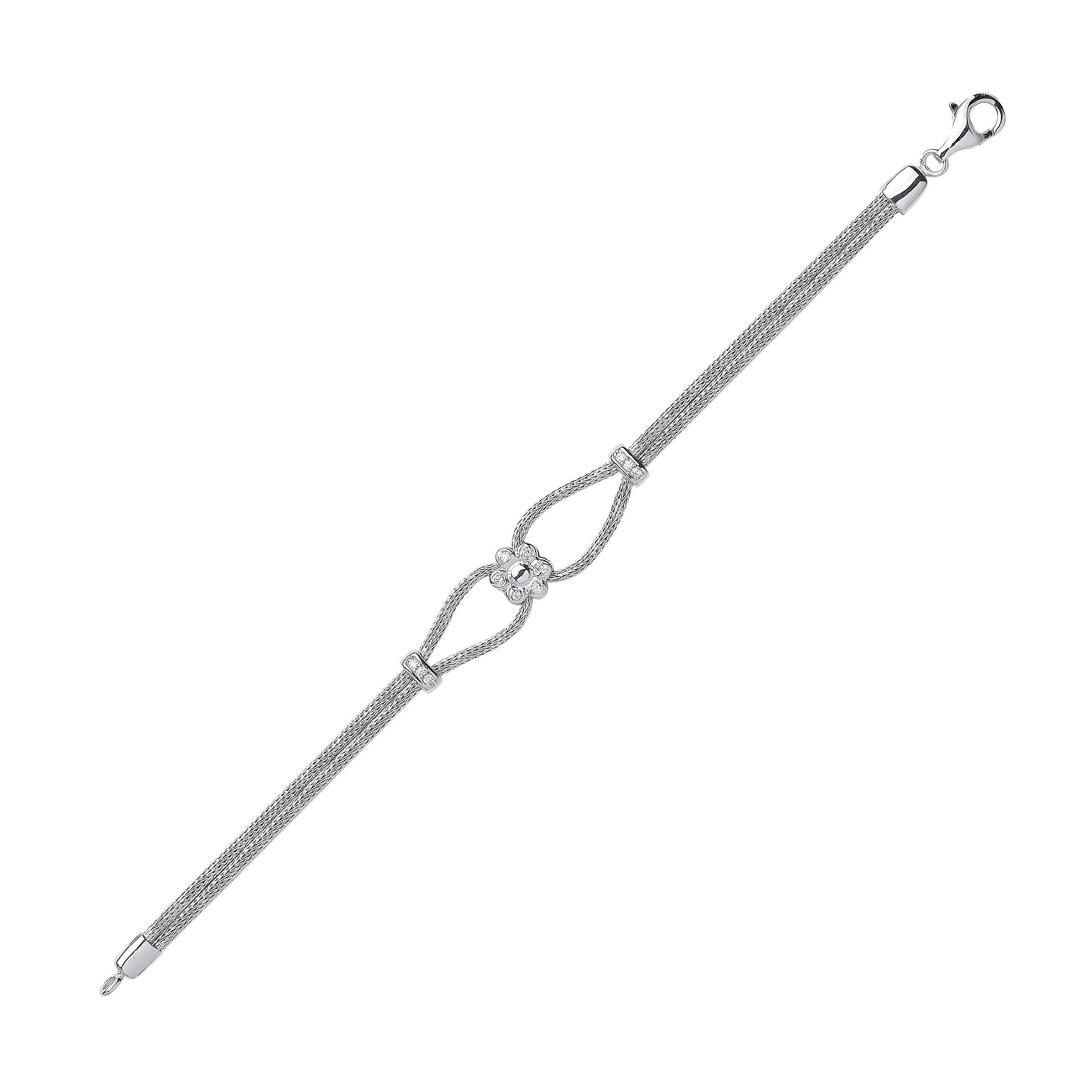 Silver Fancy Correana Bracelet With CZ Flower Accent
