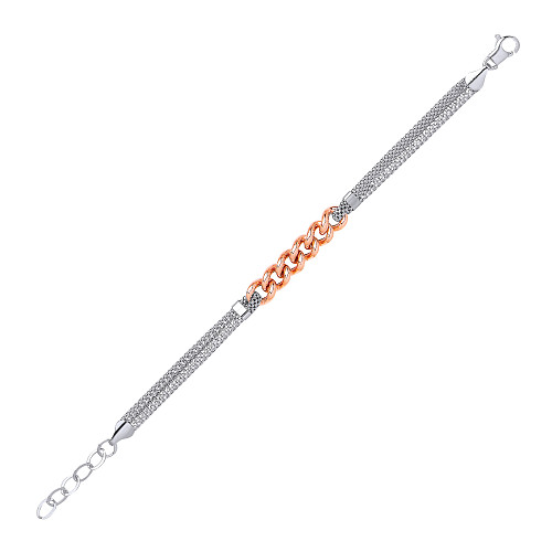 925 Sterling Silver Coreana Link Bracelet With Rose Gold Curb Detail