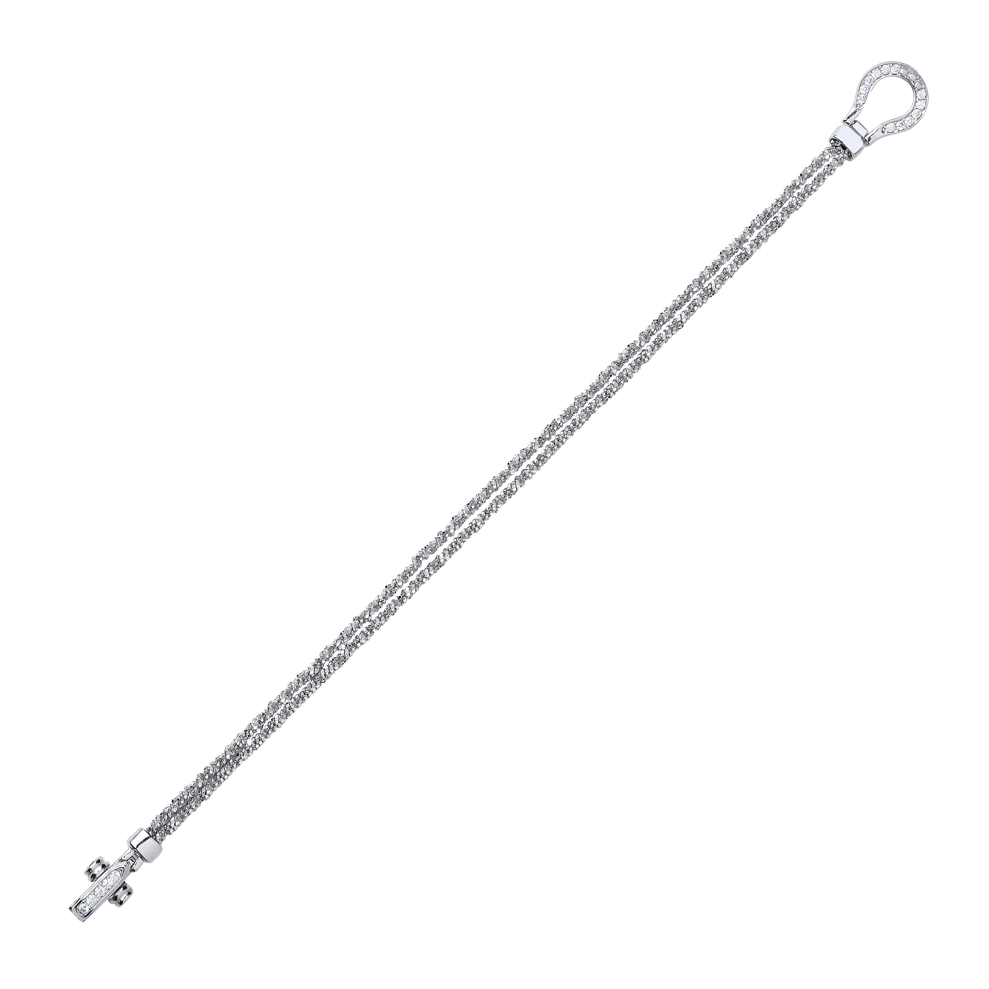 Silver Fancy Frosted Link Bracelet With CZ Clip-On Catch