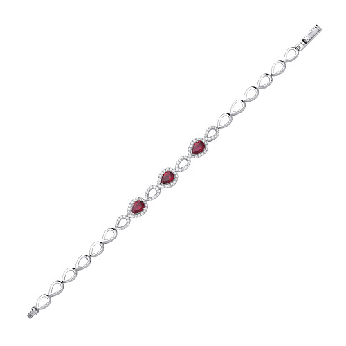 Silver CZ & Ruby Pear Drop Bracelet