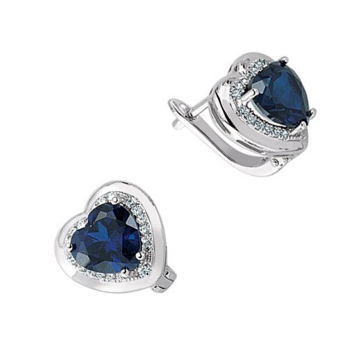 Silver Cubic Zirconia Sapphire Micro Pave Heart Earrings