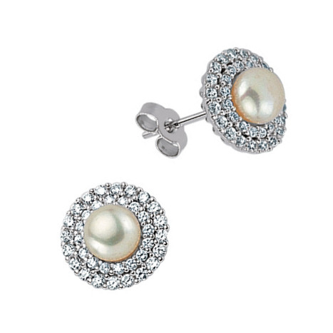 Silver Cubic Zirconia & Pearl Micro Pave Stud Earrings