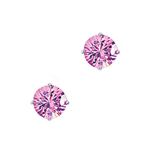 9mm Pink Round Silver Stud Earrings
