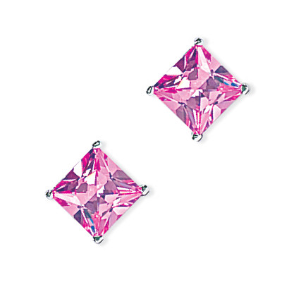 8mm Pink Square 925 Sterling Silver Stud Earrings