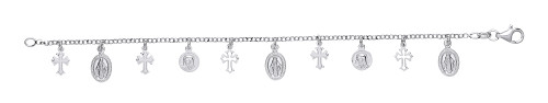925 Sterling Silver Multiple Cross & St Christopher Bracelet