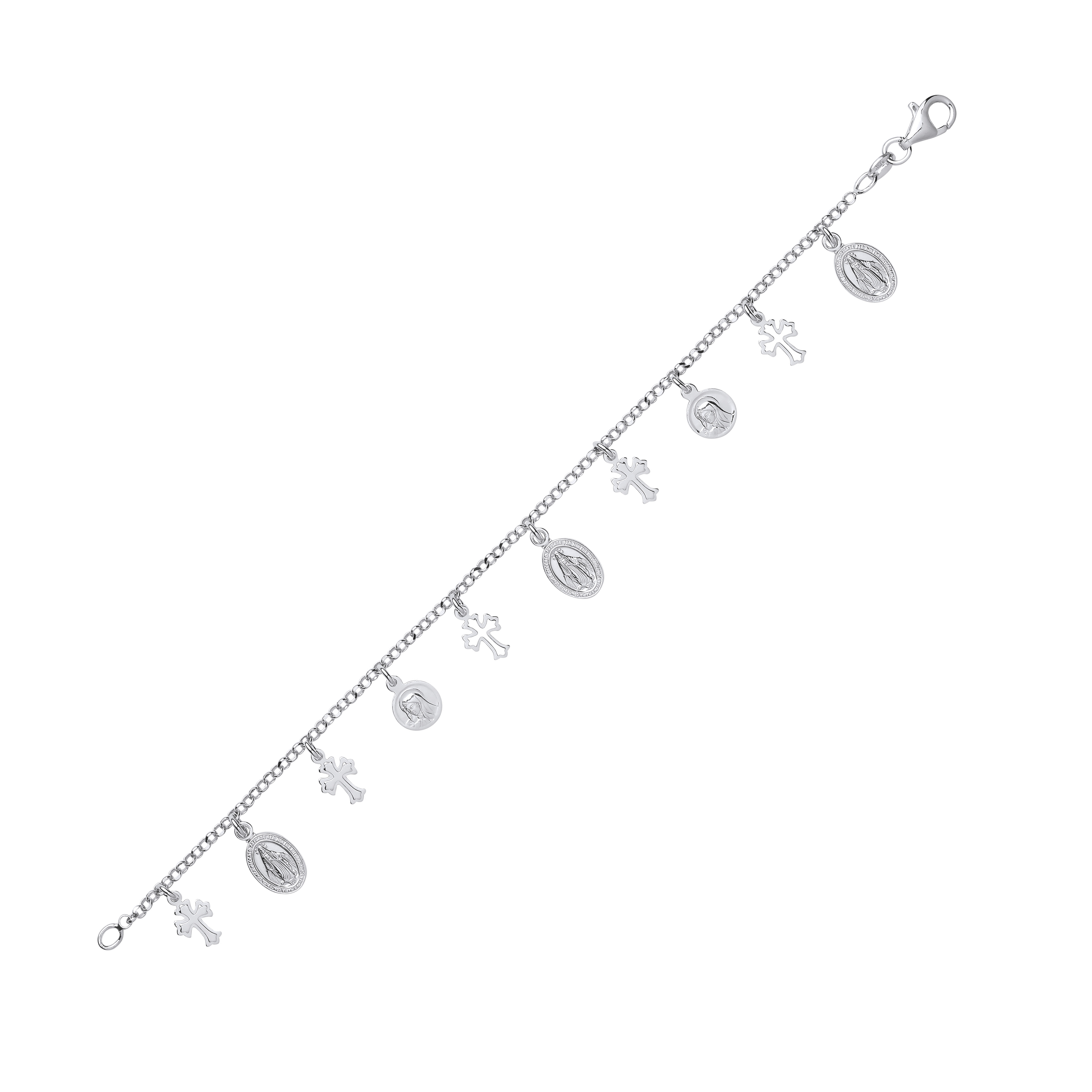 Silver Multiple Cross & St Christopher Bracelet