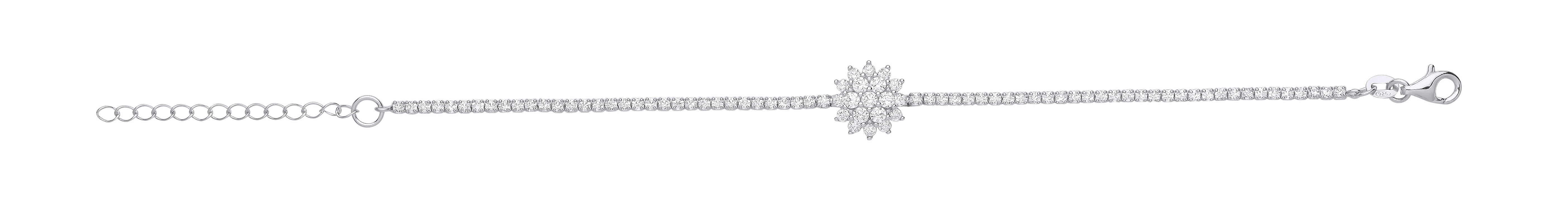 Silver CZ Tennis Bracelet With Cluster Centre Detail