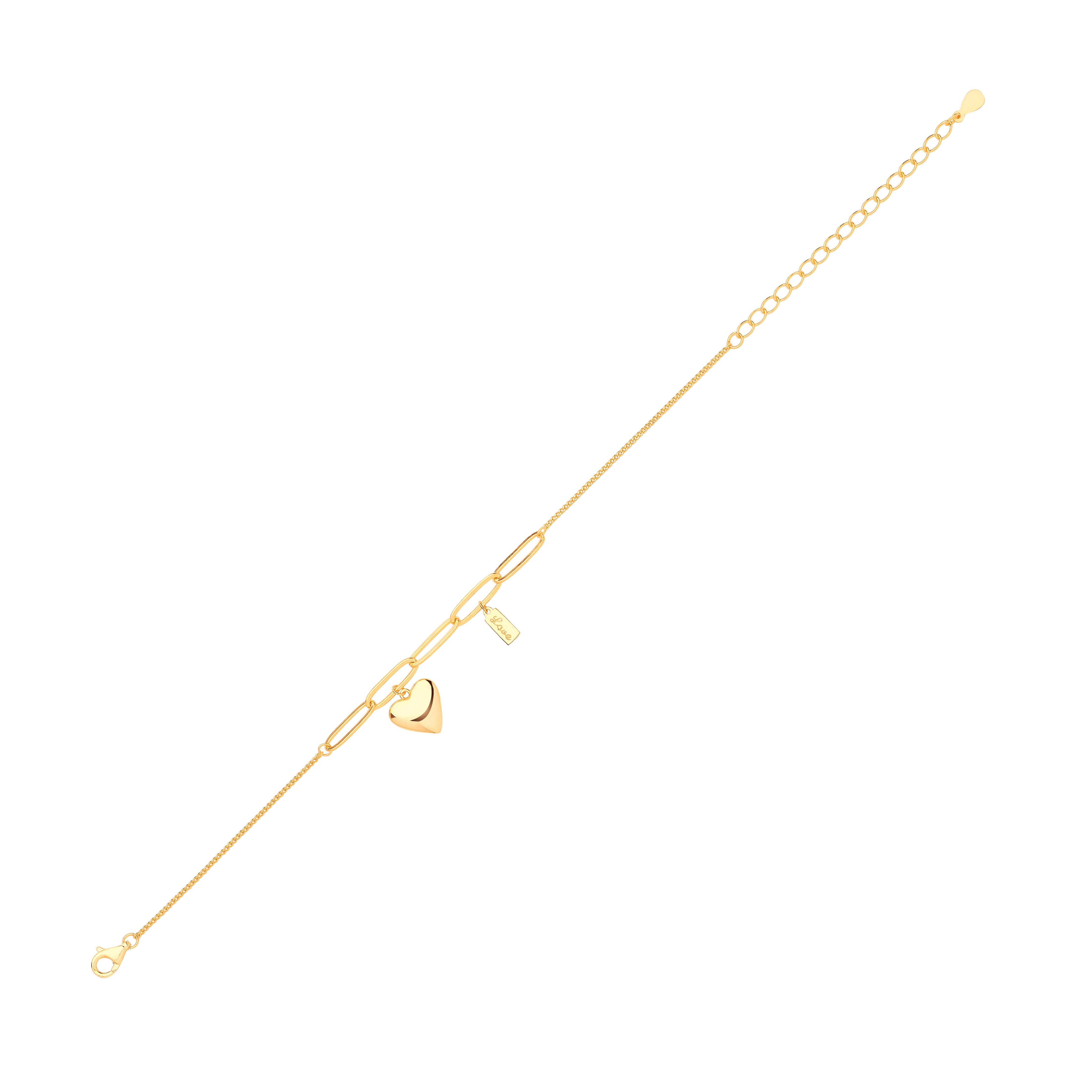 Gold Plated Paper Clip & Heart Fancy Bracelet