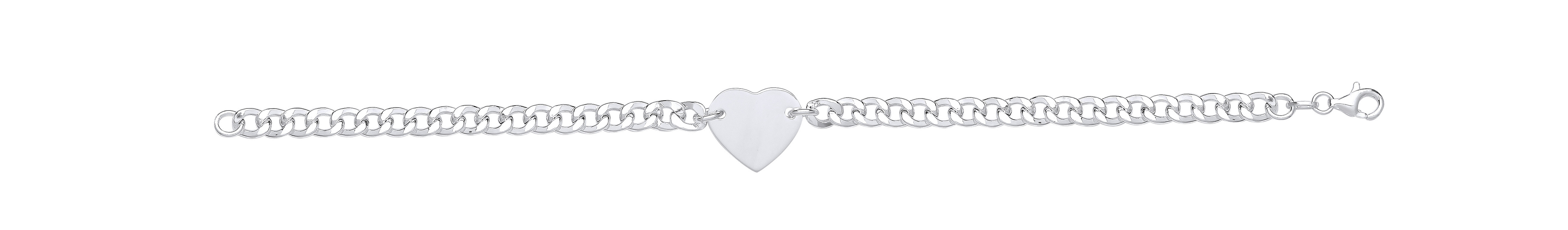 Silver Cuban Curb Link Bracelet With Heart Tag