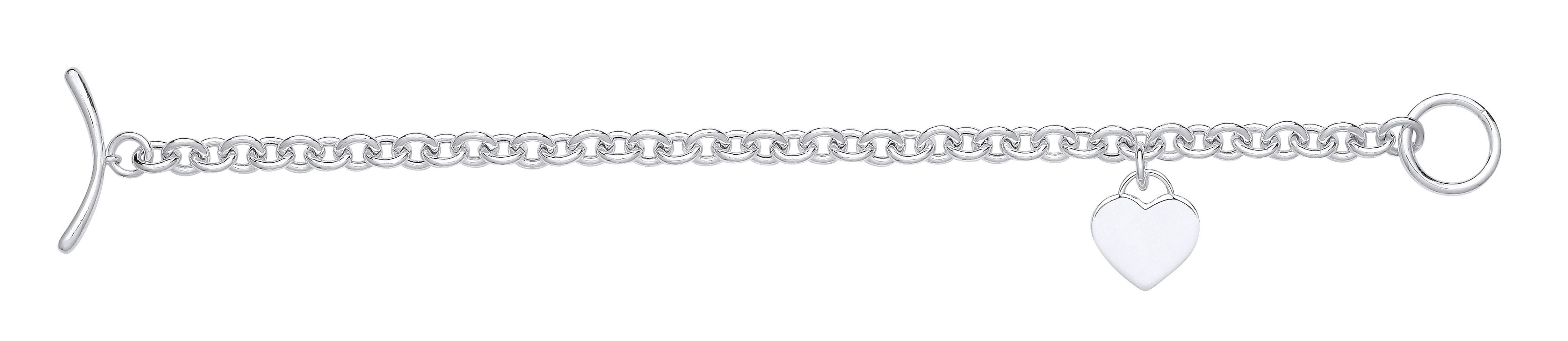 925 Sterling Silver Heart Charm & T-Bar 7.5" Bracelet