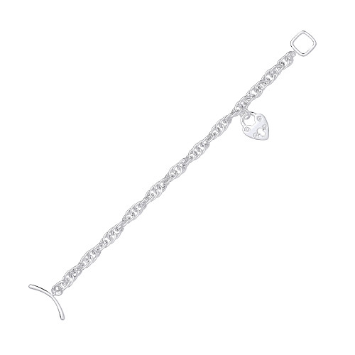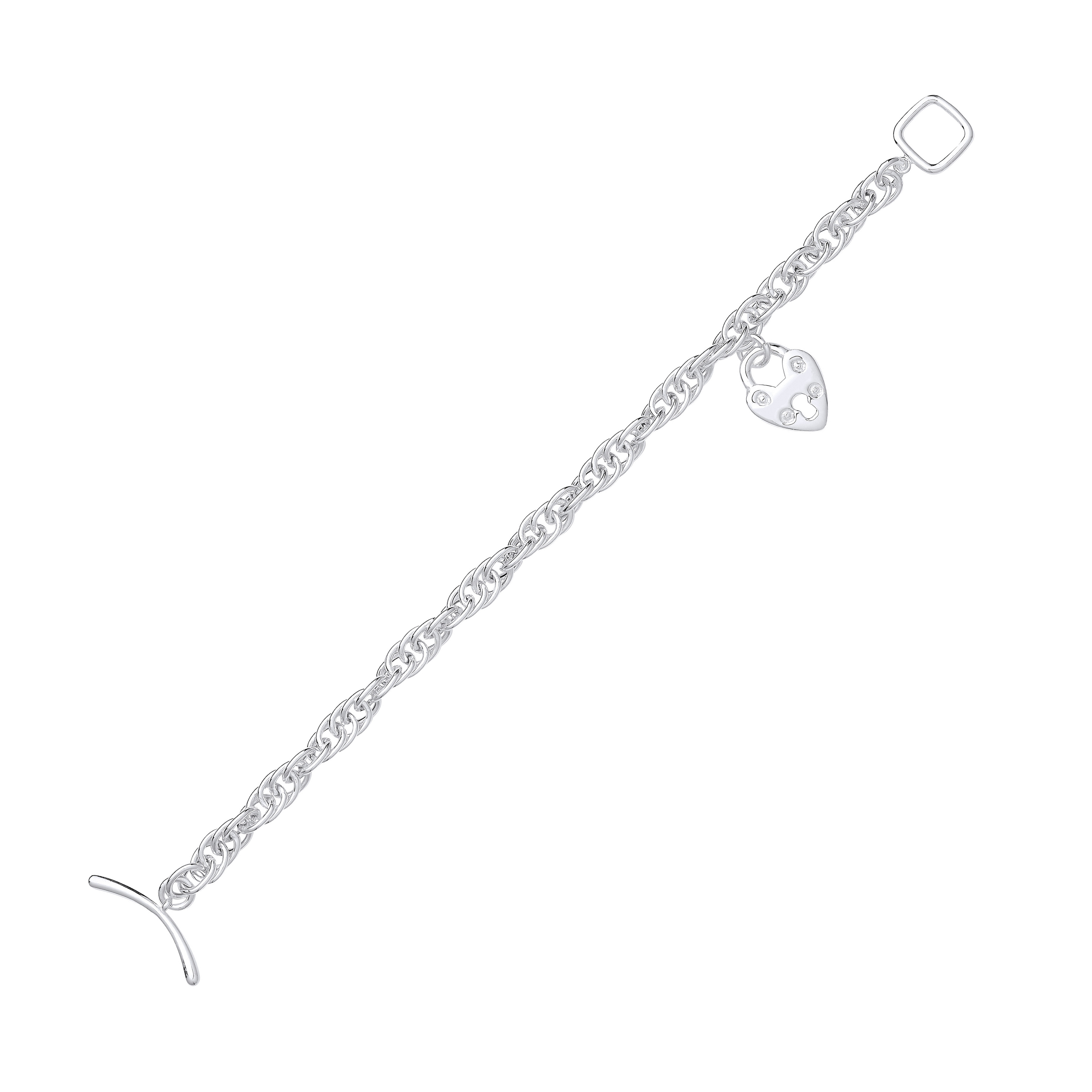 925 Sterling Silver Heart Padlock Charm & T-Bar 7.5" Bracelet