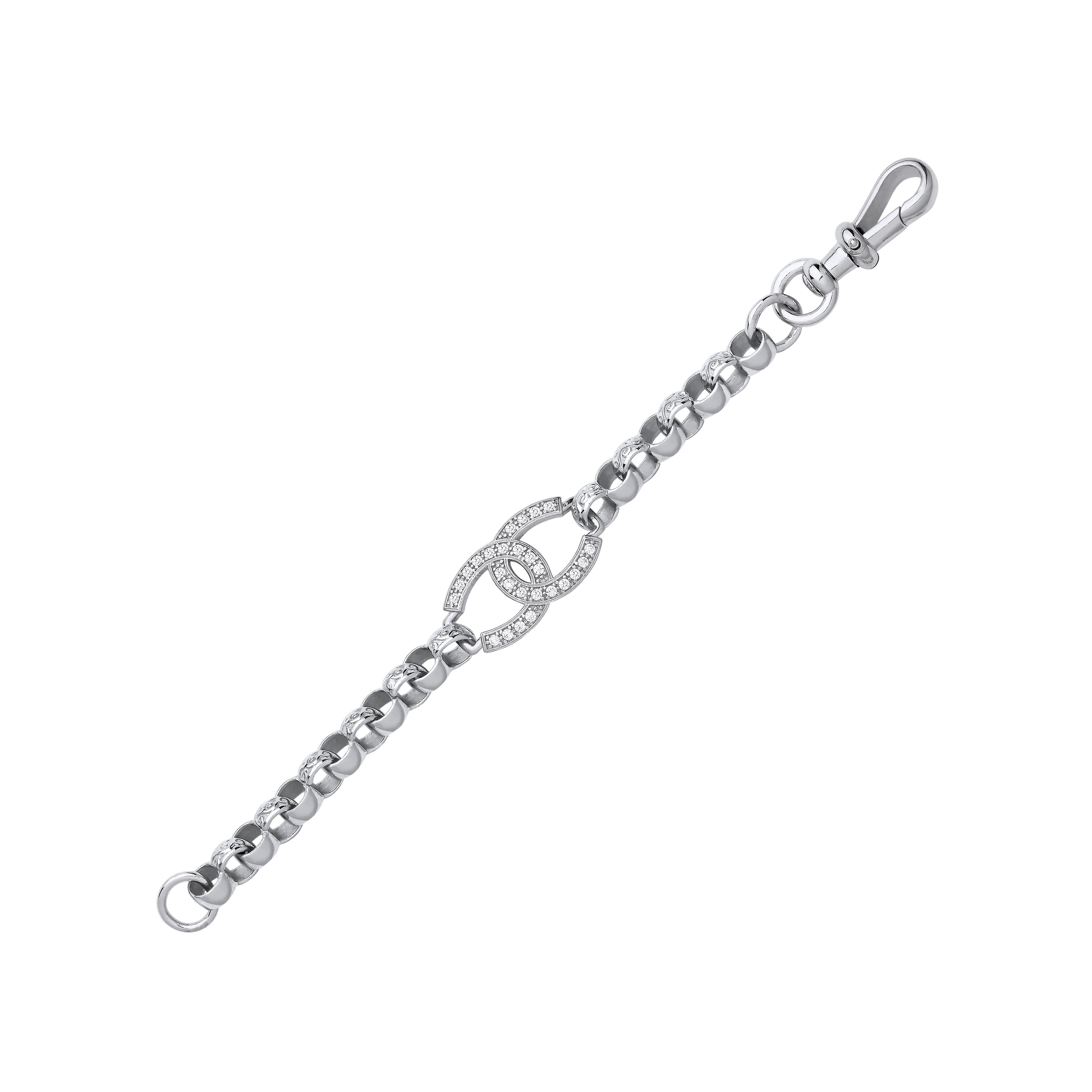 Silver PT Plate CZ Fancy Belcher 5.5" Bracelet