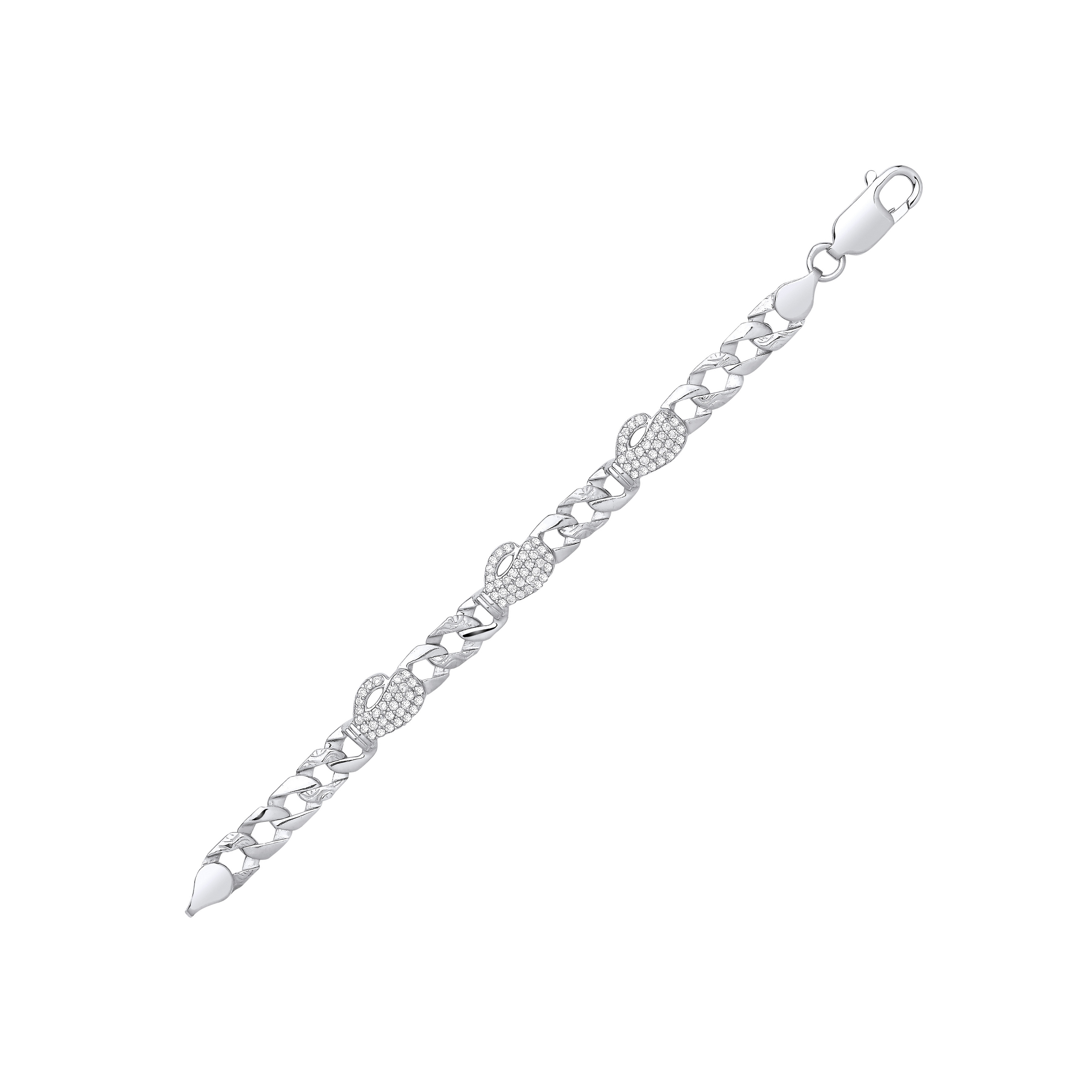 Silver PT Plate CZ Boxing Glove 5.5" Curb Bracelet