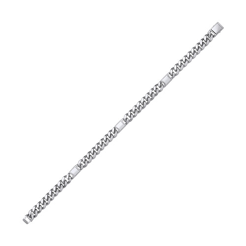 Platinum Plate Curb & Bar Gents 8.5" Bracelet