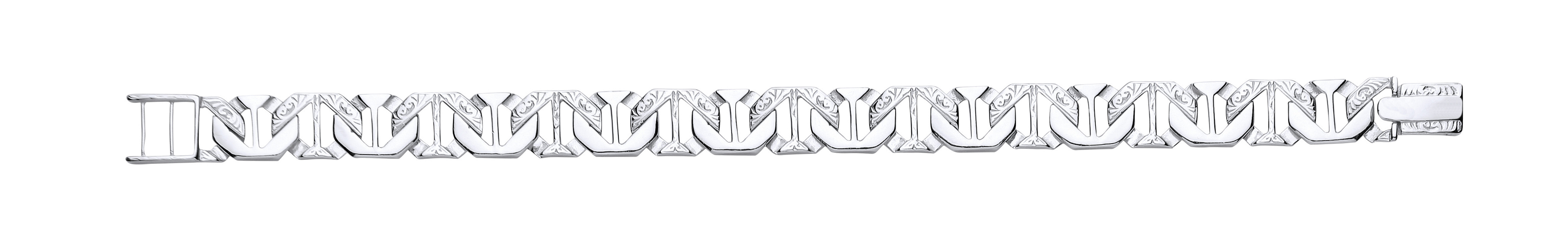 925 Sterling Silver Gents Chaps Bracelet With Polished & Barked Links