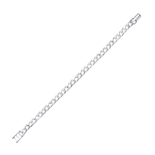 925 Sterling Silver Gents Chaps Bracelet With Barked & Engraved Links