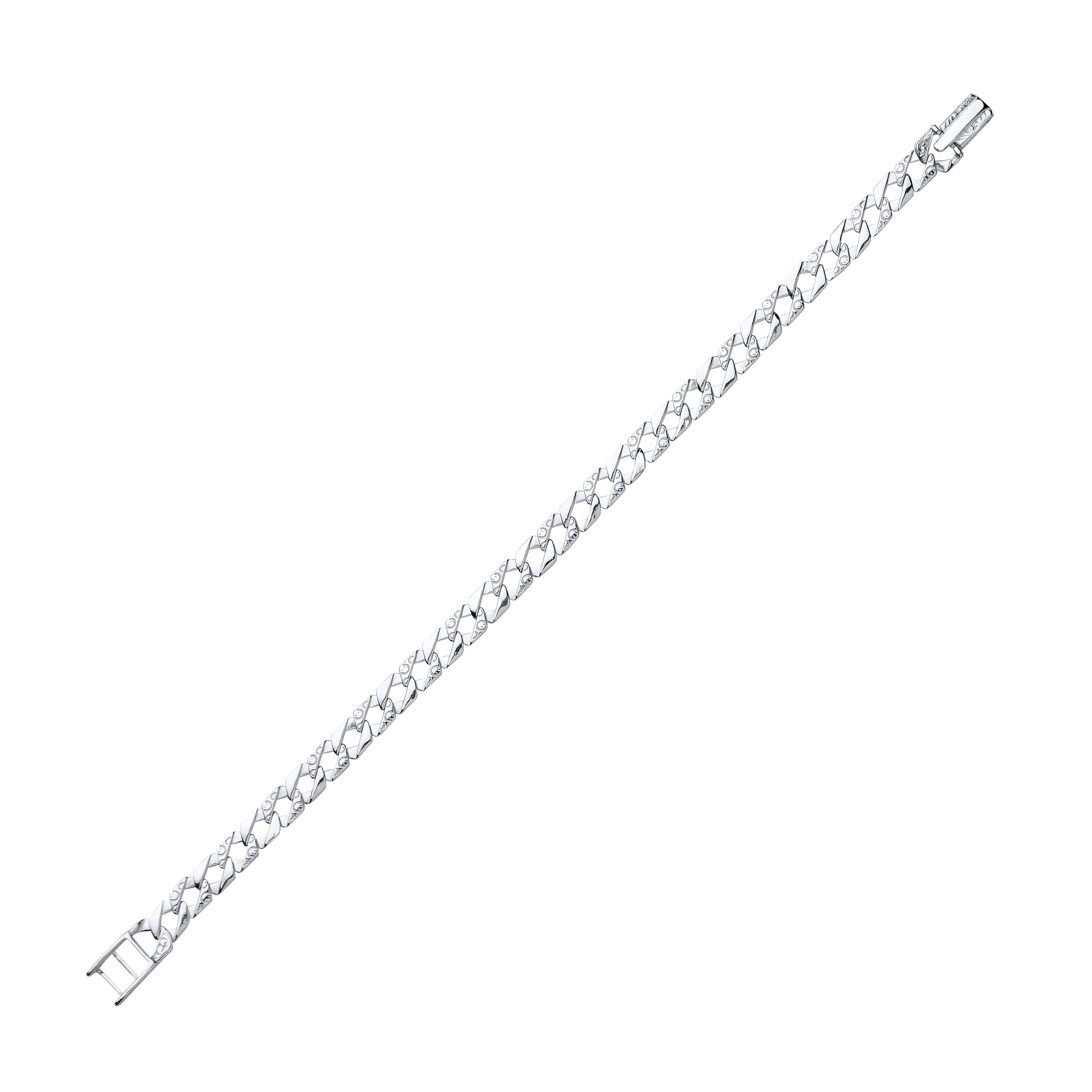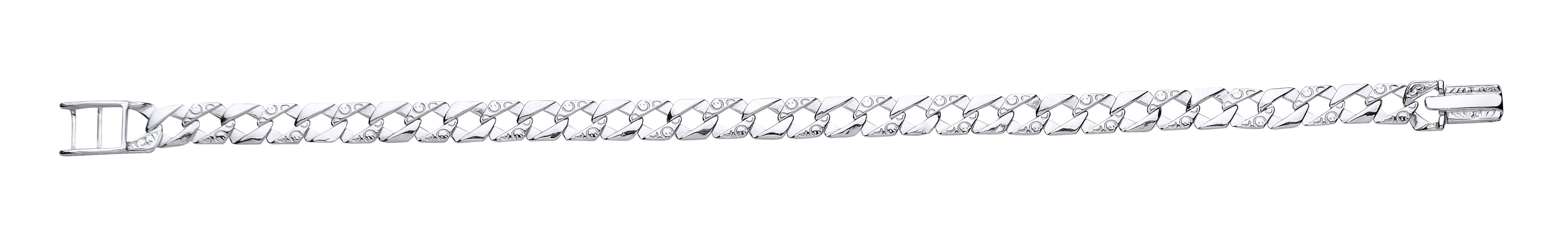 Silver Gents Chaps Bracelet With Barked & Engraved Links