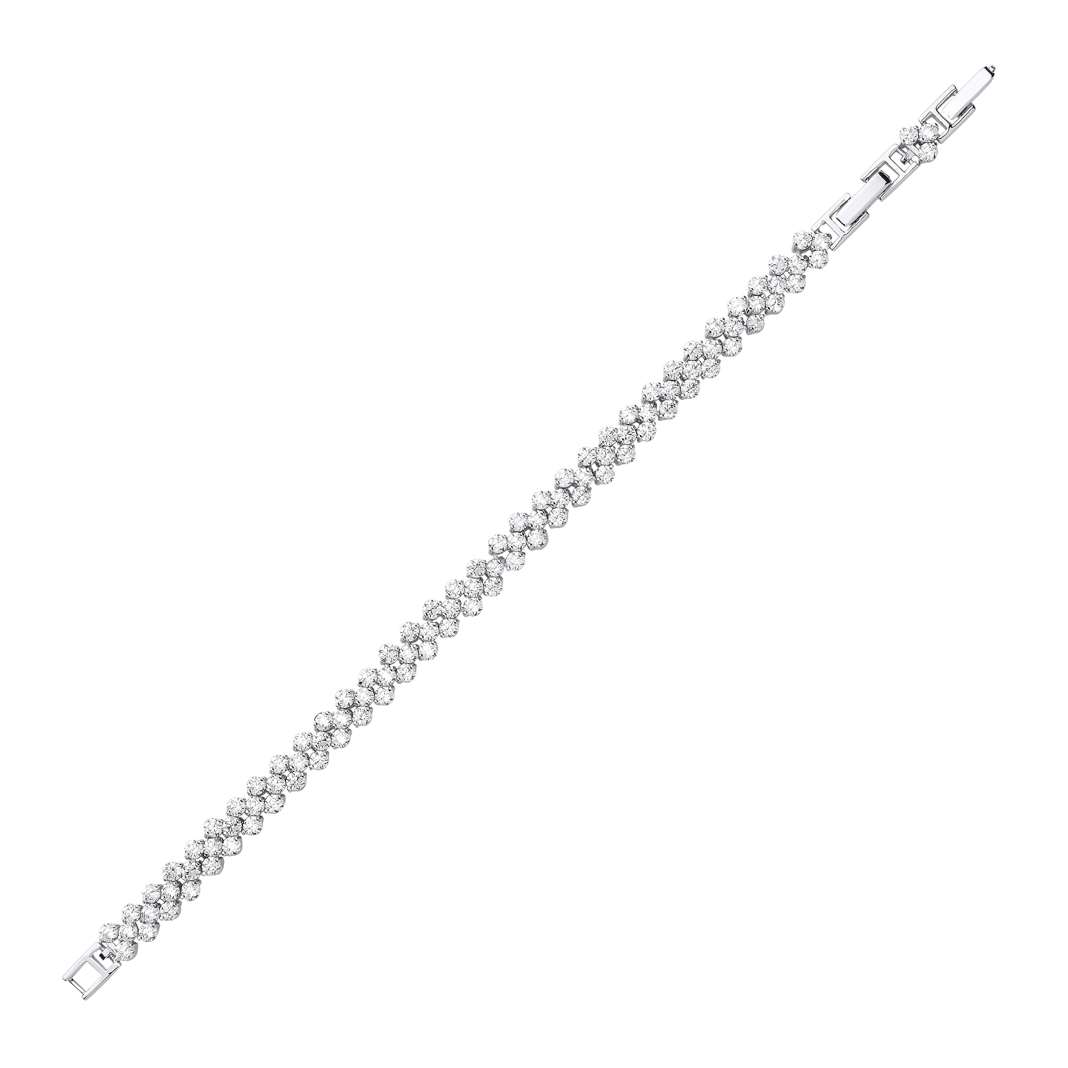 925 Sterling Silver Cluster Tennis Bracelet With 1 Inch Extension