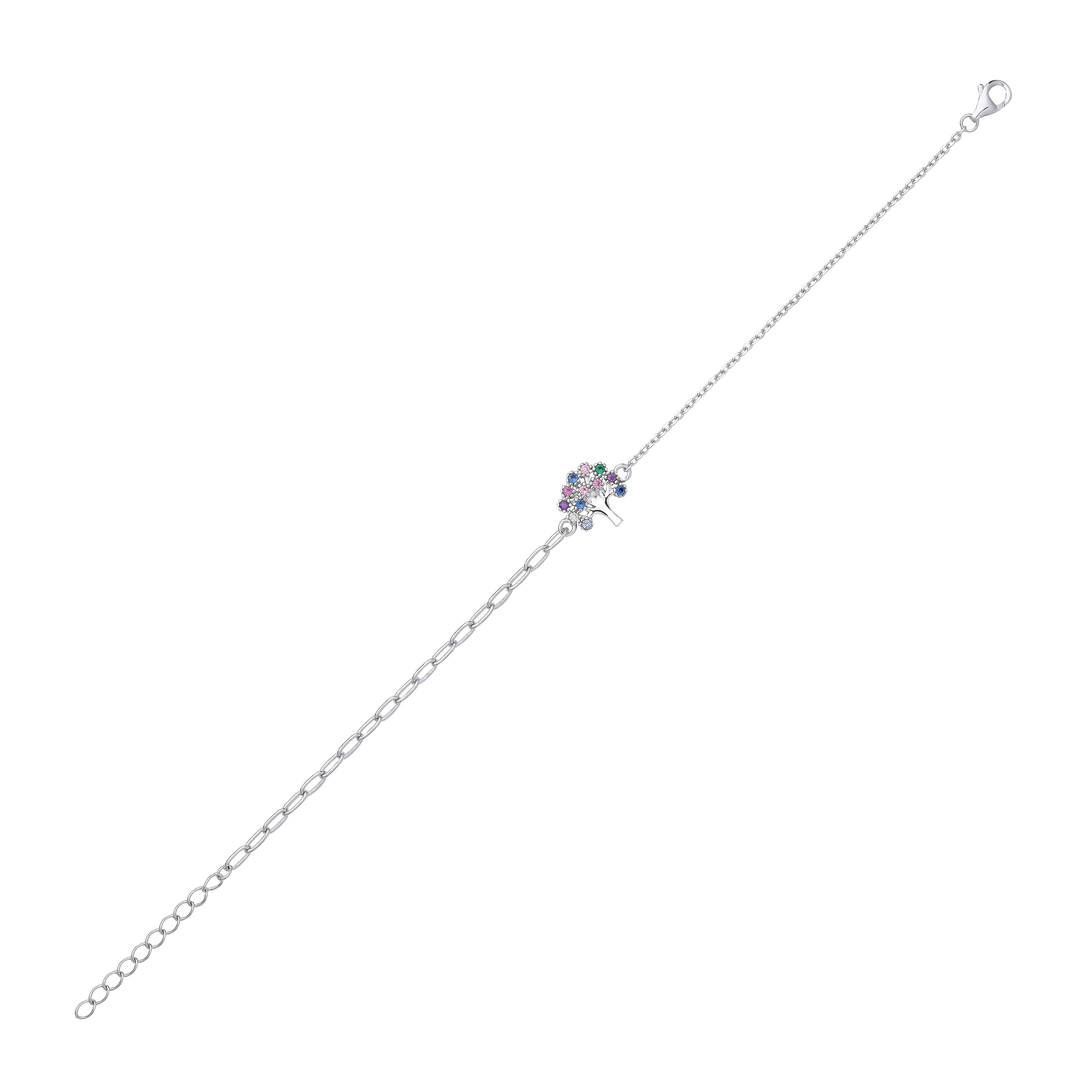 Silver CZ Multicolour Tree Of Life Bracelet