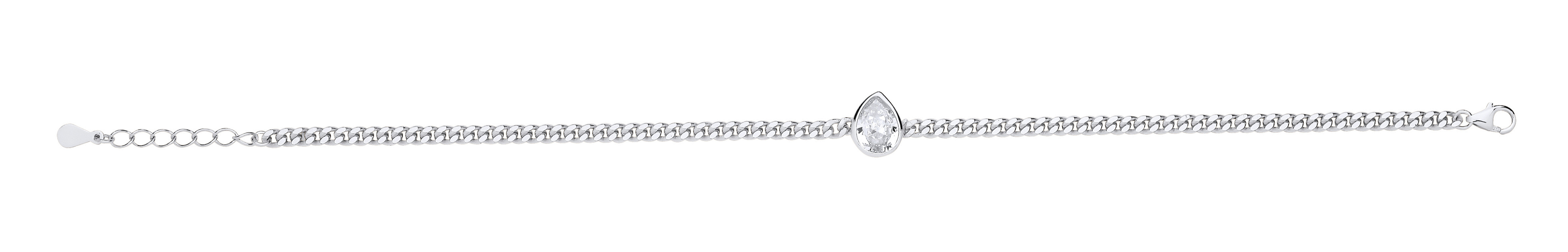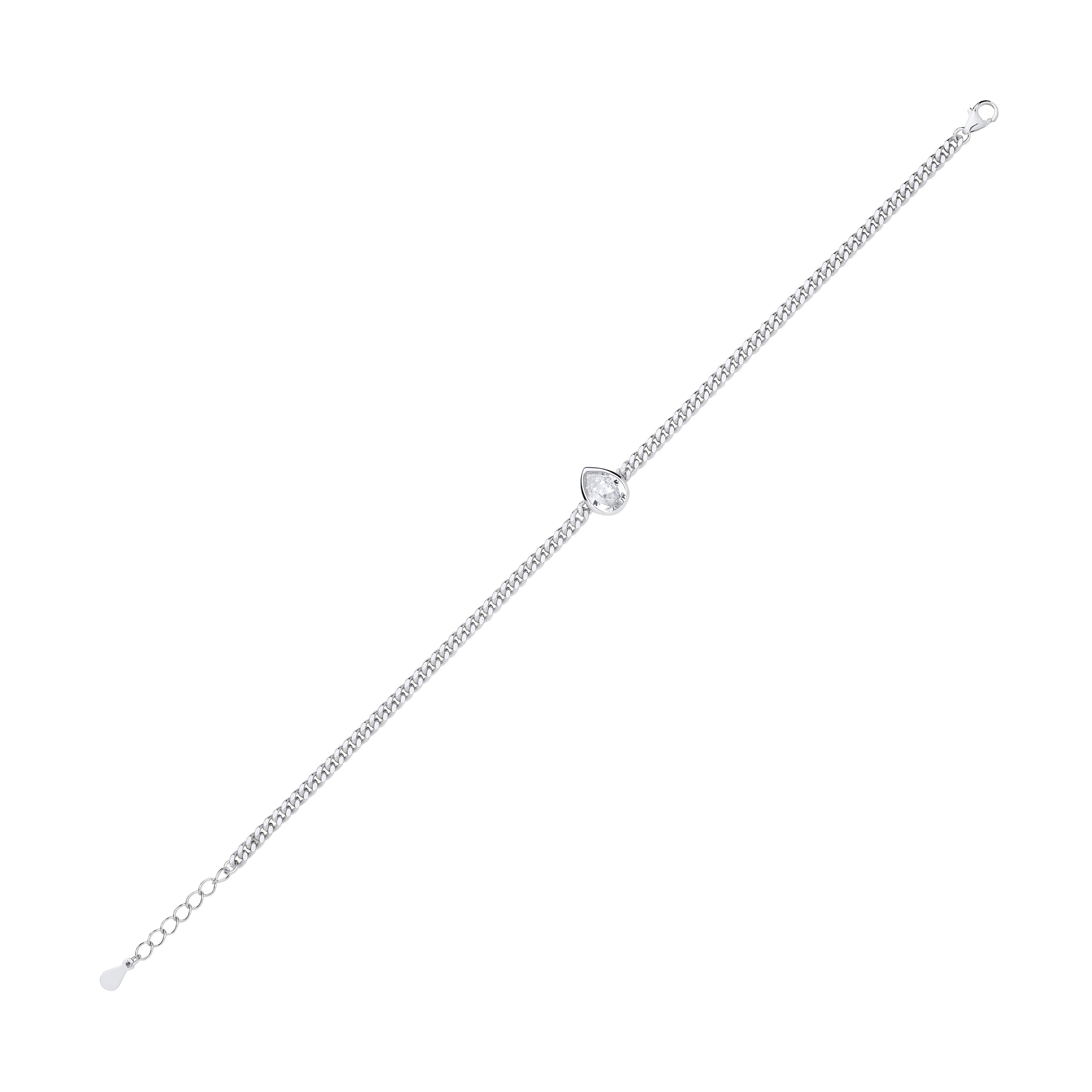 Silver Curb Bracelet With Pear Drop Stone Detail