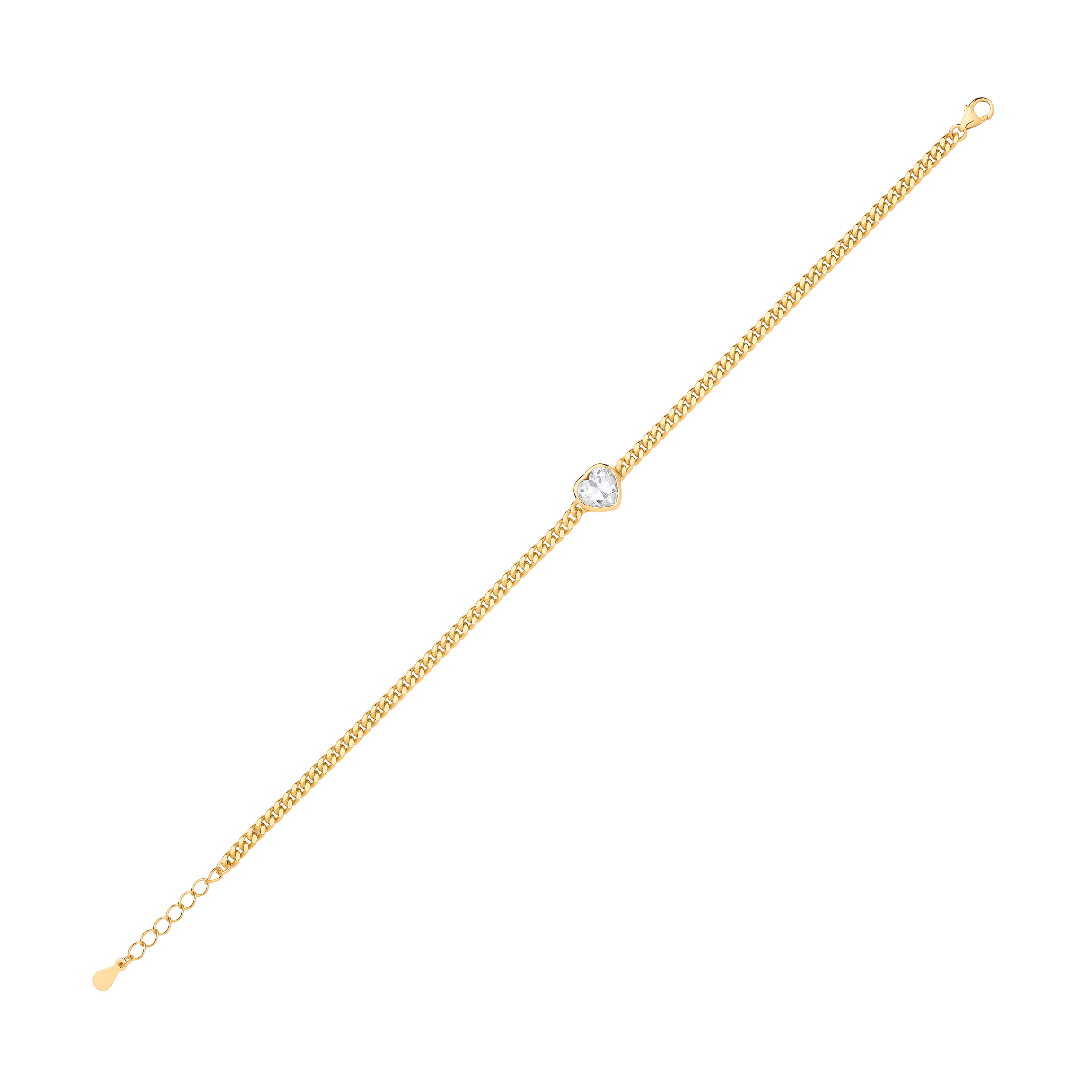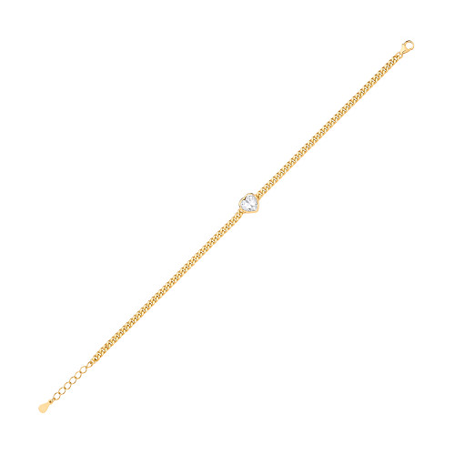 Gold Plated Curb Bracelet With Heart Stone Detail
