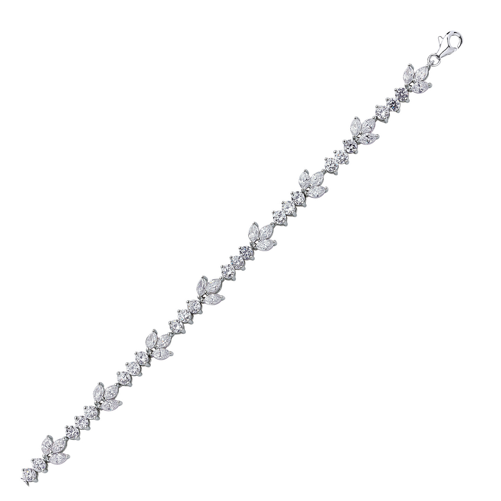 Silver Cubic Zirconia Leaf Tennis Bracelet