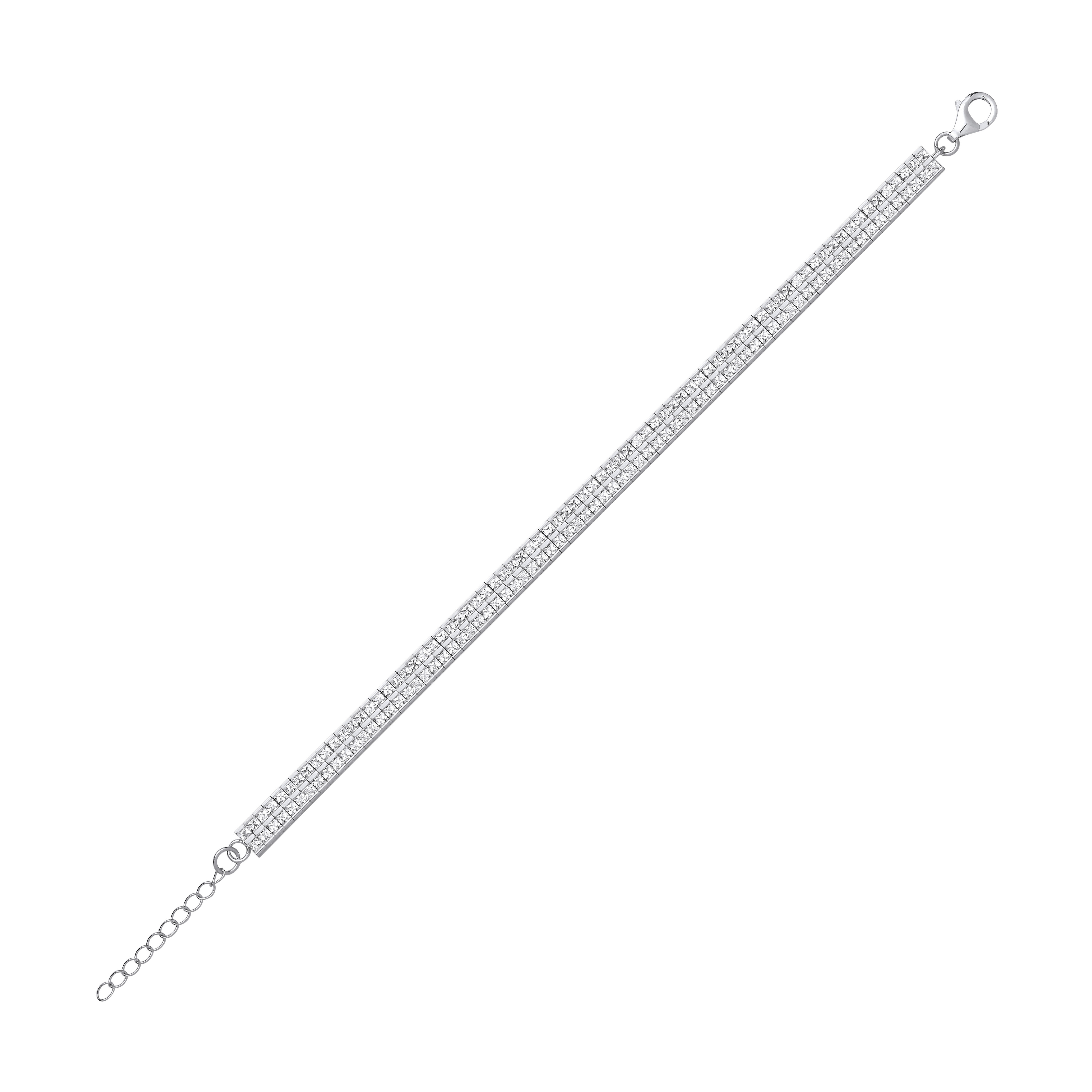 925 Sterling Silver Cubic Zirconia 2 Row Line Bracelet