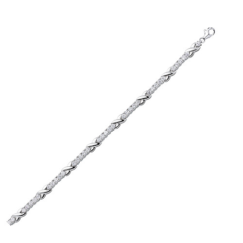 Silver CZ Set Tennis Bracelet With Polished Crosses