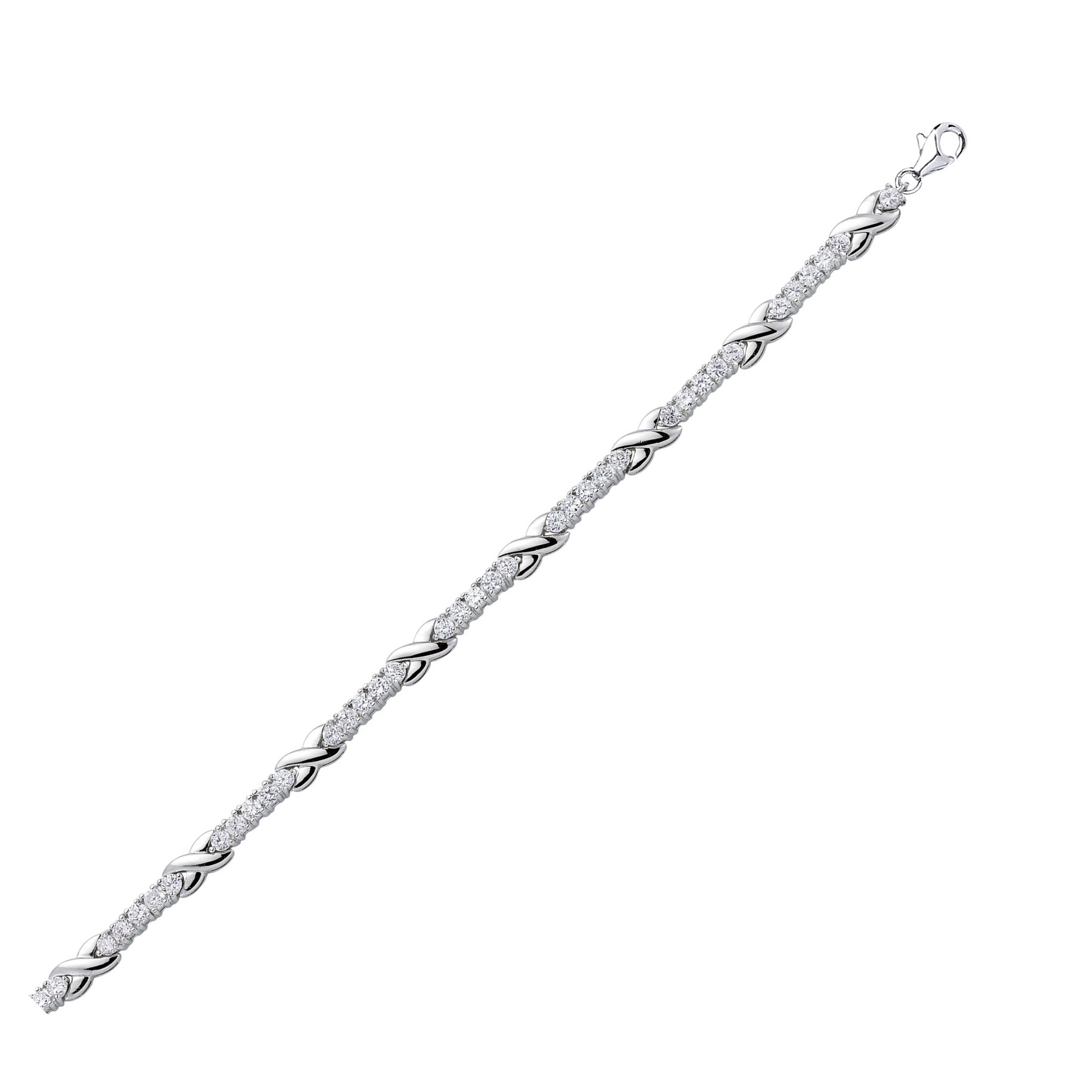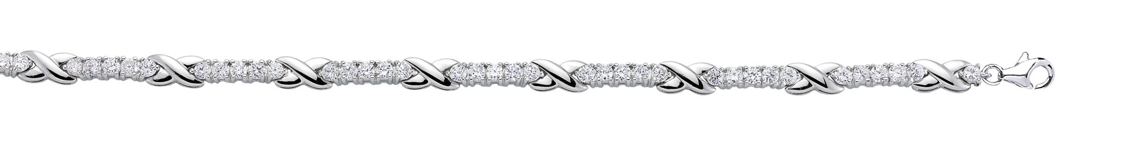 925 Sterling Silver CZ Set Tennis Bracelet With Polished Crosses