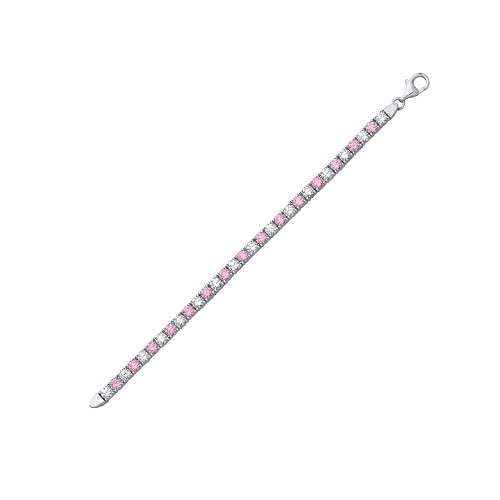 925 Sterling Silver CZ & Pink Claw Set 4.5" Tennis Bracelet