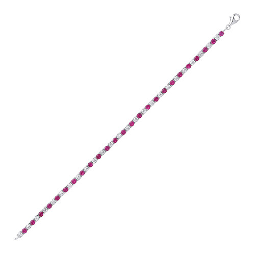 925 Sterling Silver CZ White & Ruby Claw Set Tennis Bracetet