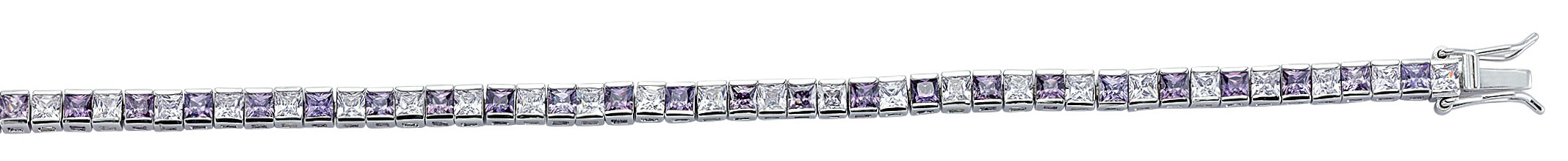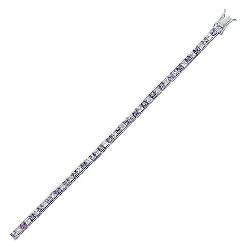 925 Sterling Silver CZ Amethyst & White Channel Set Tennis Bracelet