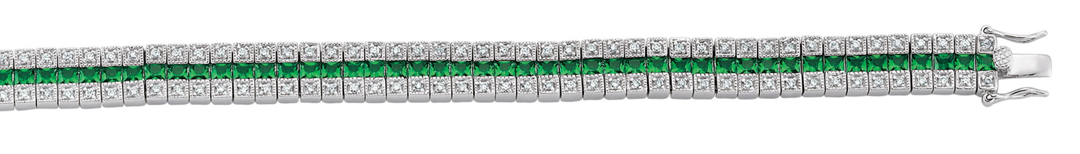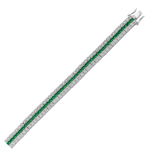 Silver Cubic Zirconia Triple Row Emerald & White Bracelet