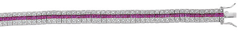 Silver Cubic Zirconia Triple Row Ruby & White Bracelet