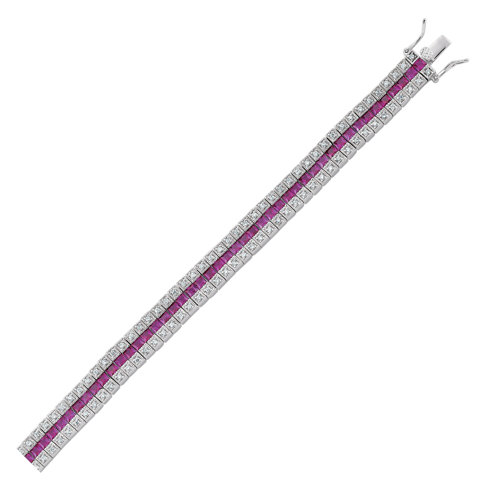 925 Sterling Silver Cubic Zirconia Triple Row Ruby & White Bracelet