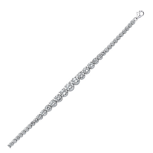 Silver Cubic Zirconia Round Graduated Bracelet