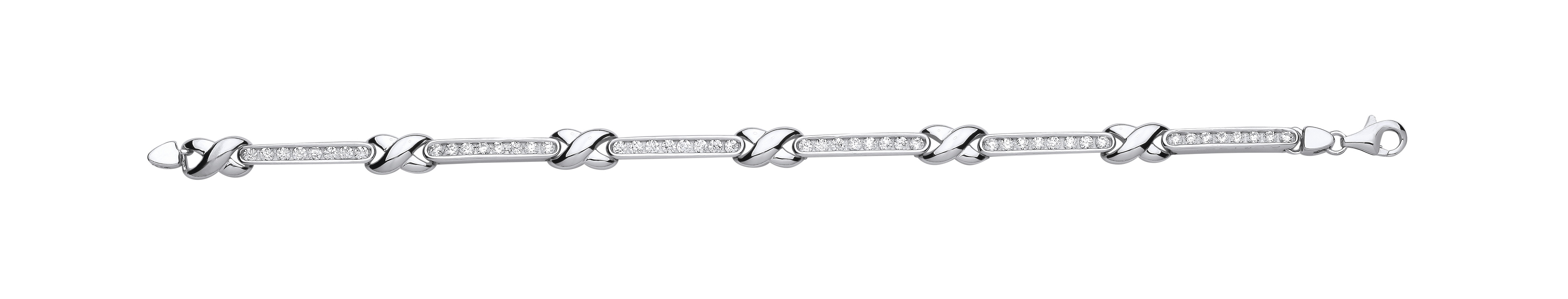 Silver CZ Channel Set Tennis Bracelet With Polished Crosses