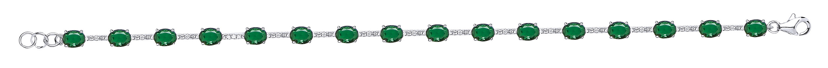 Silver Colourless CZ with Oval Emerald CZ Bracelet