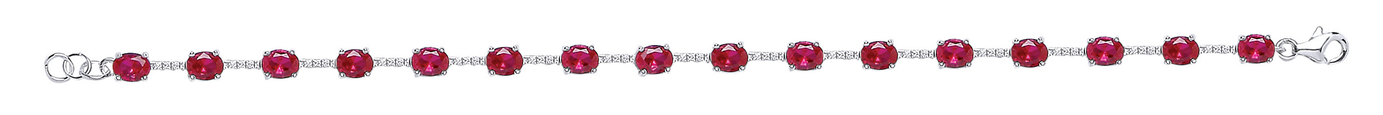 925 Silver Colourless CZ with Oval Ruby CZ Bracelet