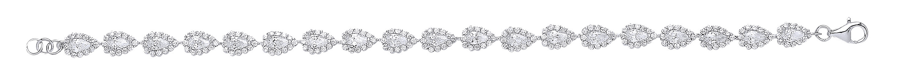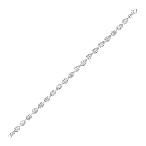 925 Sterling Silver CZ Pear Shaped Link Tennis Bracelet
