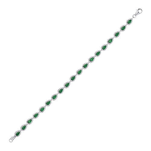 925 Sterling Silver CZ & Emerald Pear Shaped Link Tennis Bracelet