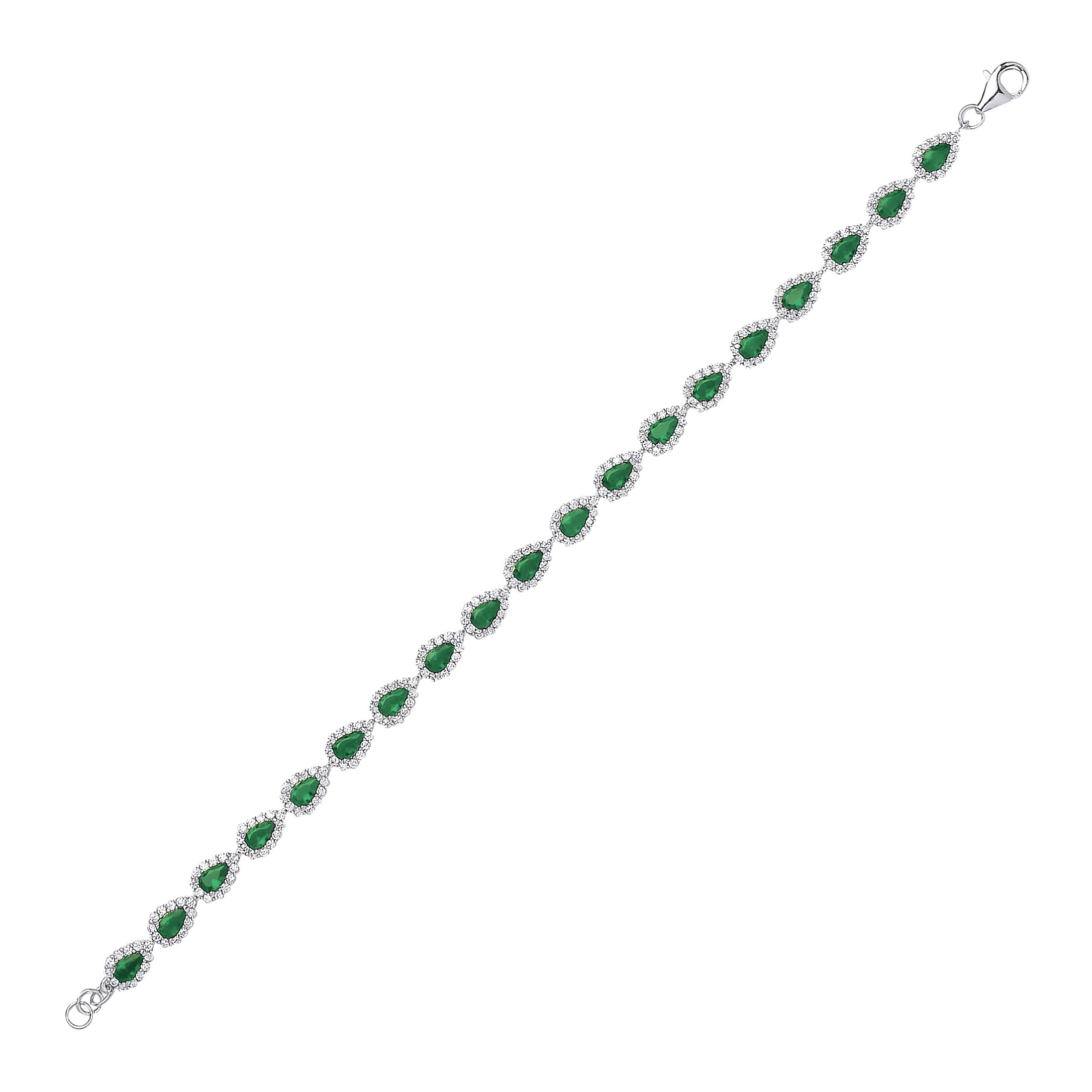 Silver CZ & Emerald Pear Shaped Link Tennis Bracelet