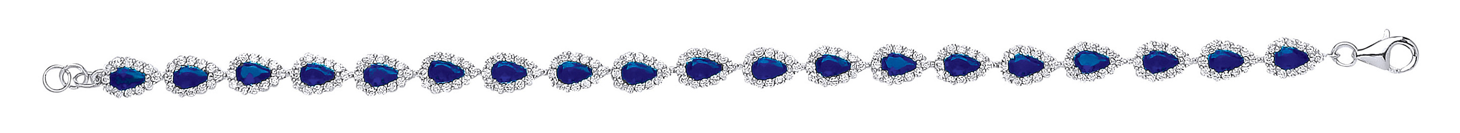 925 Sterling Silver CZ & Sapphire Pear Shaped Link Tennis Bracelet