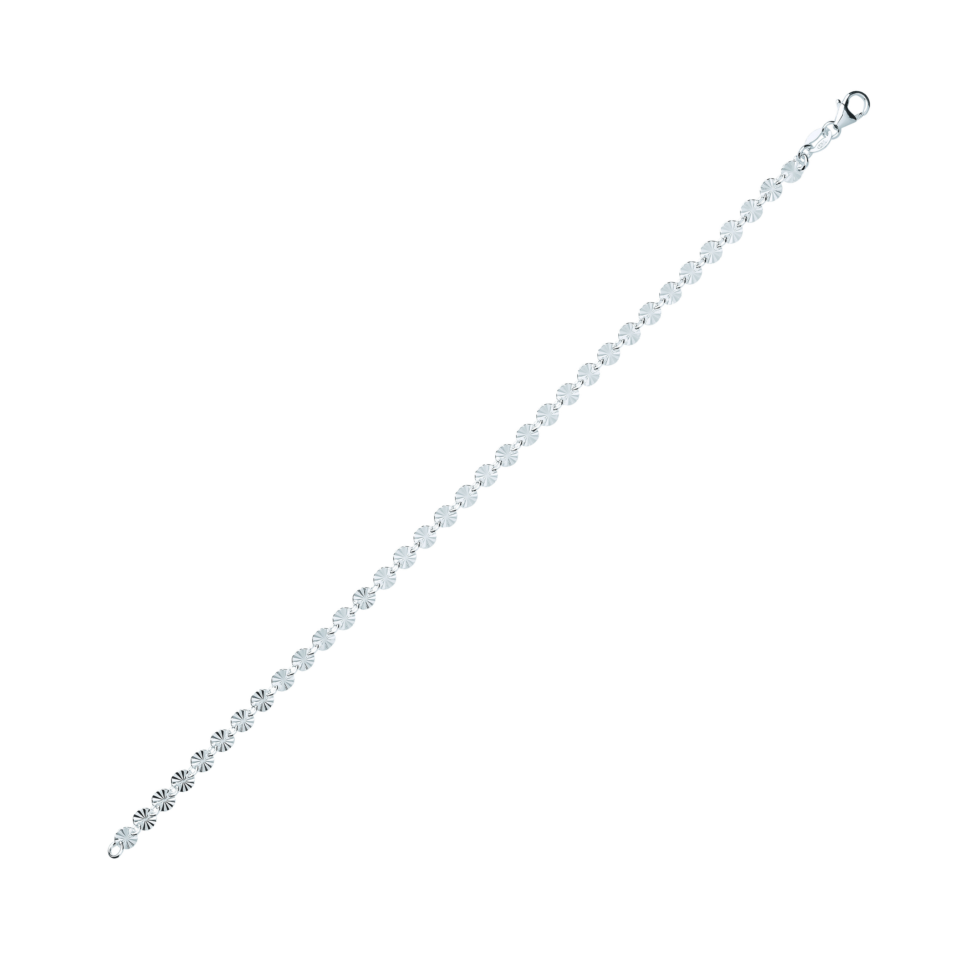 Silver Diamond Cut Small Disc Link Ladies Bracelet